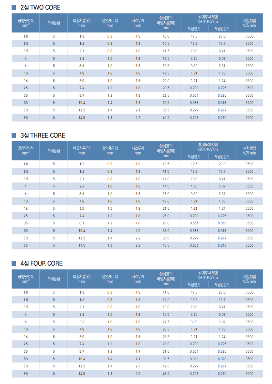 - 적용규격 : KS C IEC 60502-1 (밑 참고 바랍니다.)