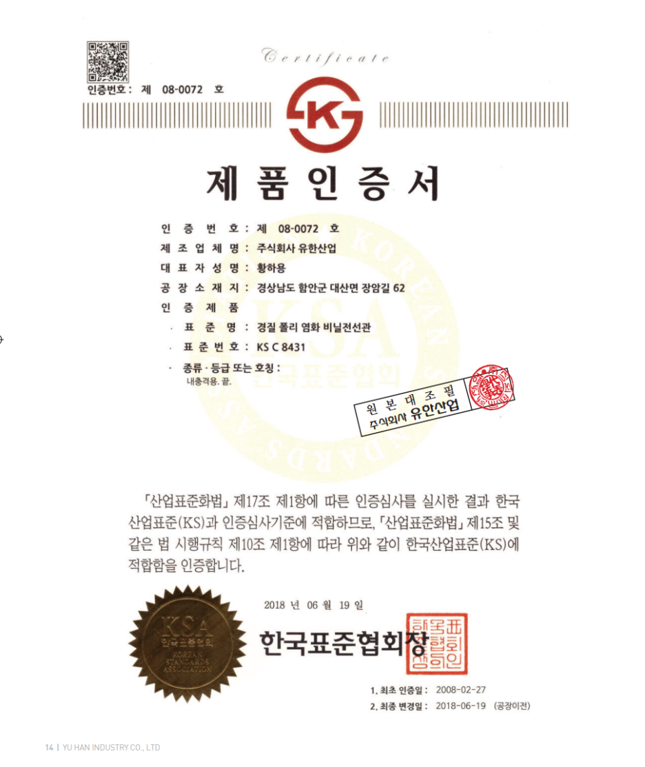 전선관 특징은 압축복원성, 충격시험,인장시험, 절연내력 ,절연저항, 내연변형성, 내연성등