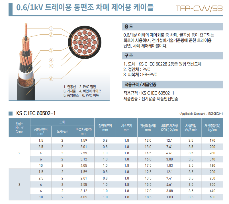 안녕하세요 TFR-CVVSB 트레이용 동편조 차폐 제어용 케이블에 대해 설명드릴려고 합니다.