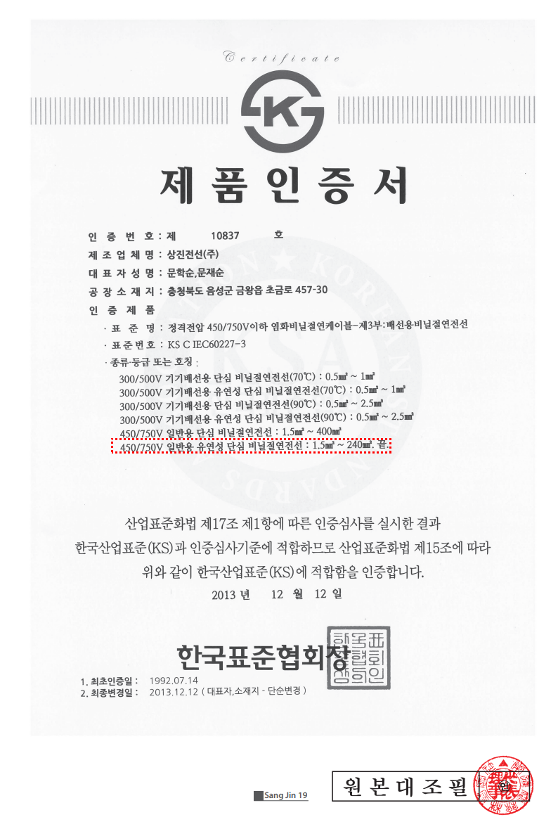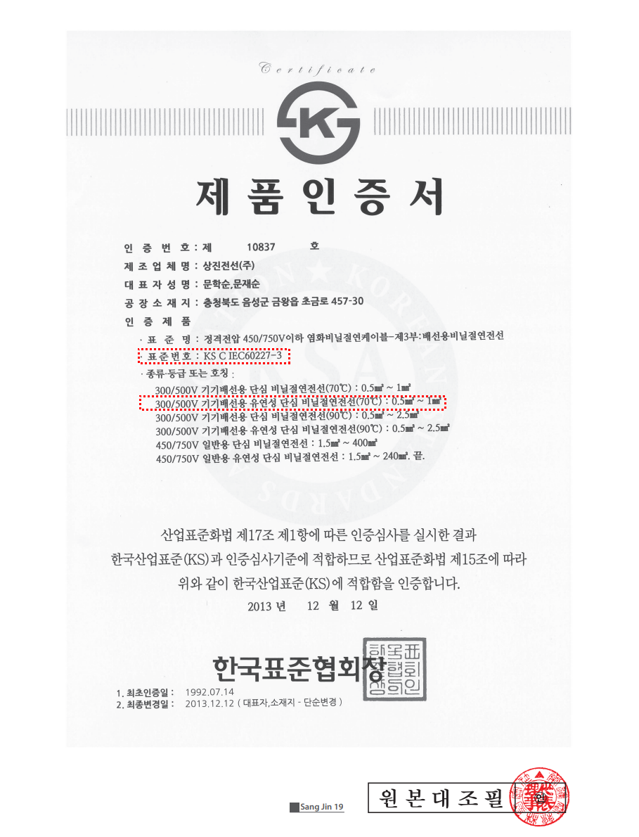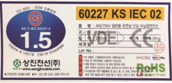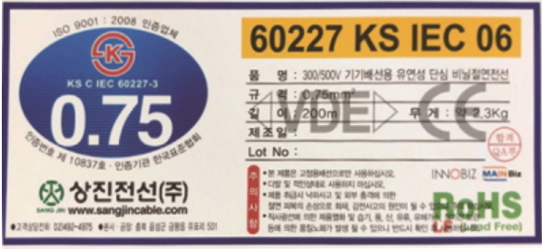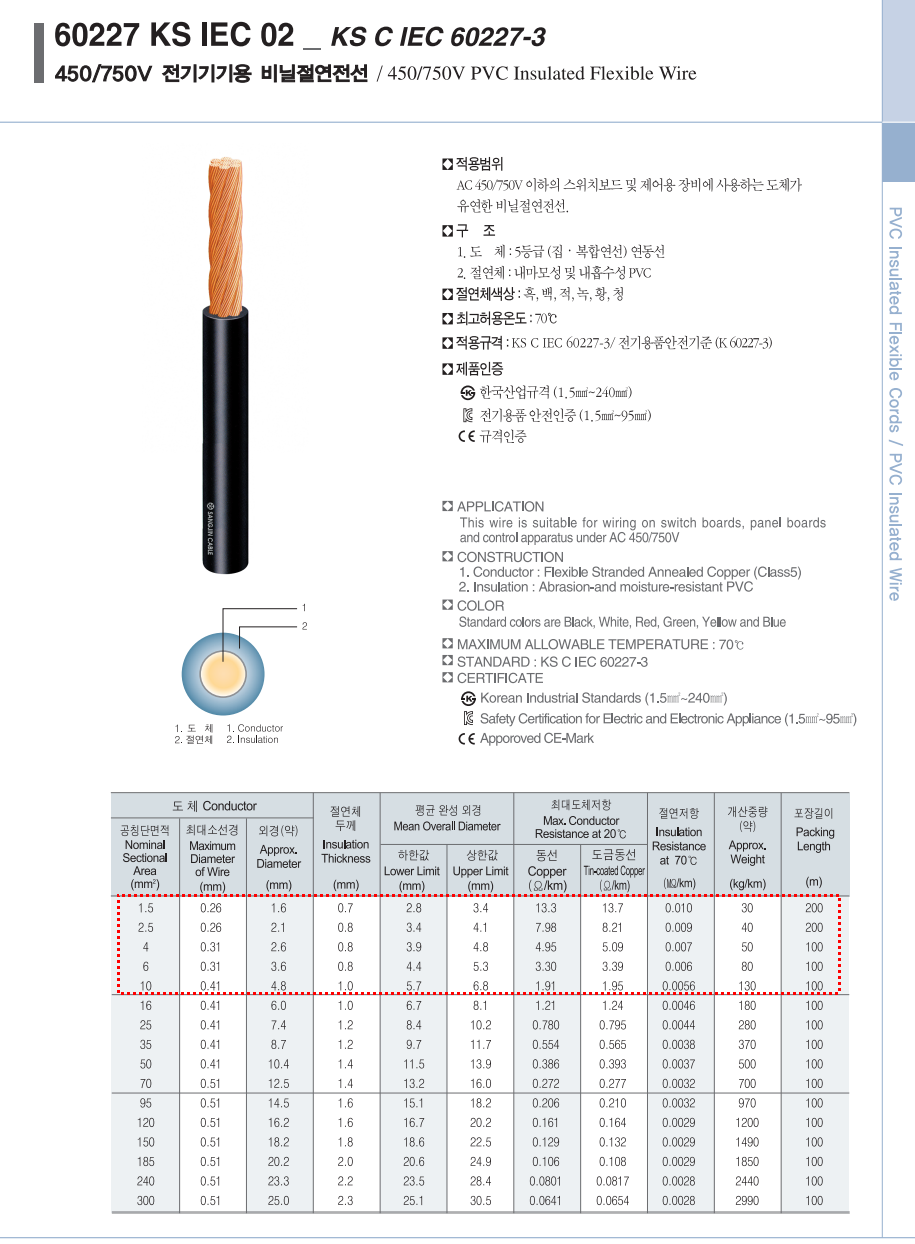 60227 KS IEC 02 , 450/750V - KIV 전선 입니다.