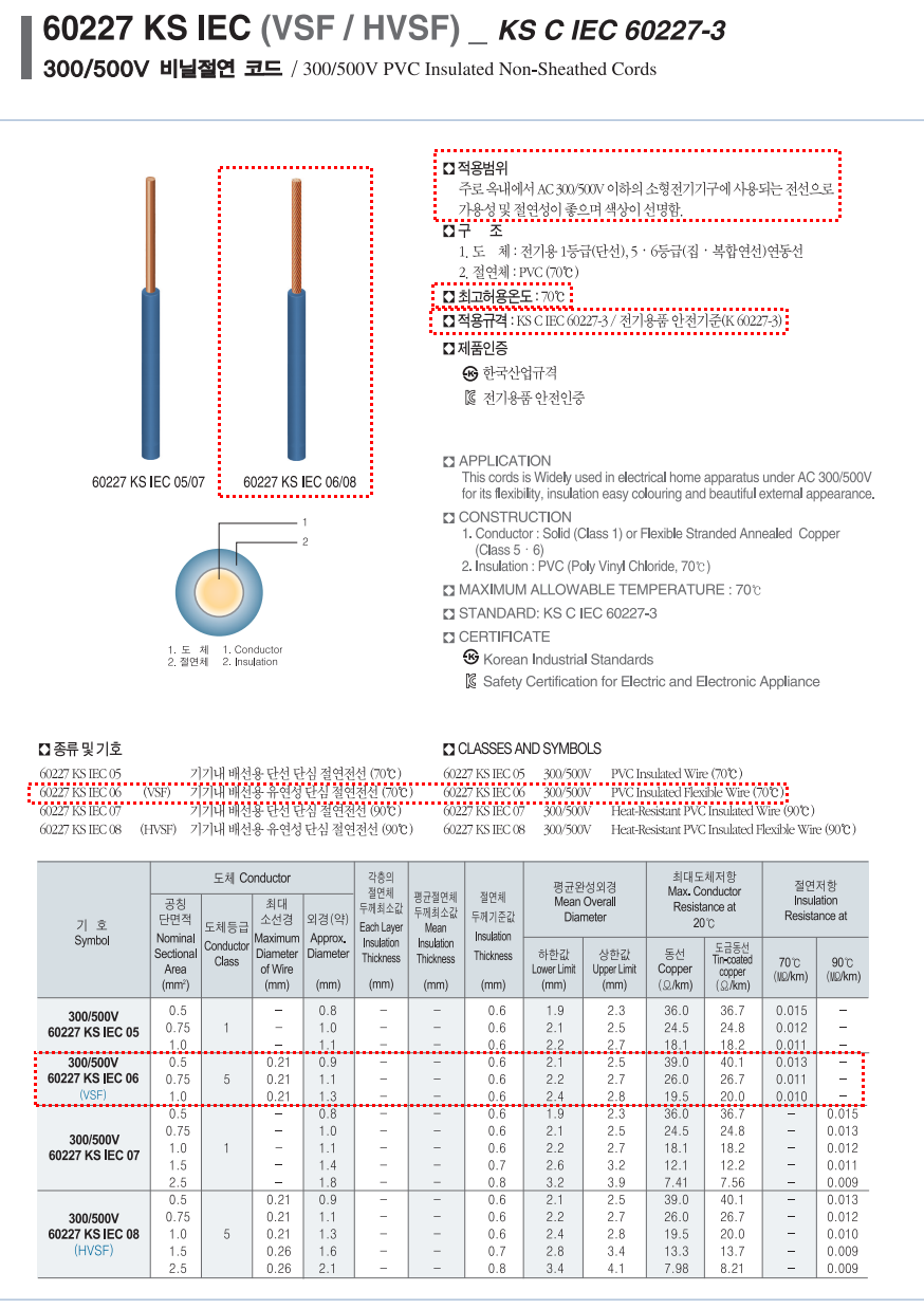 카다로그보시면 0.5SQ ~ 1.0SQ 까지는 VSF라는 품목으로 나옵니다.