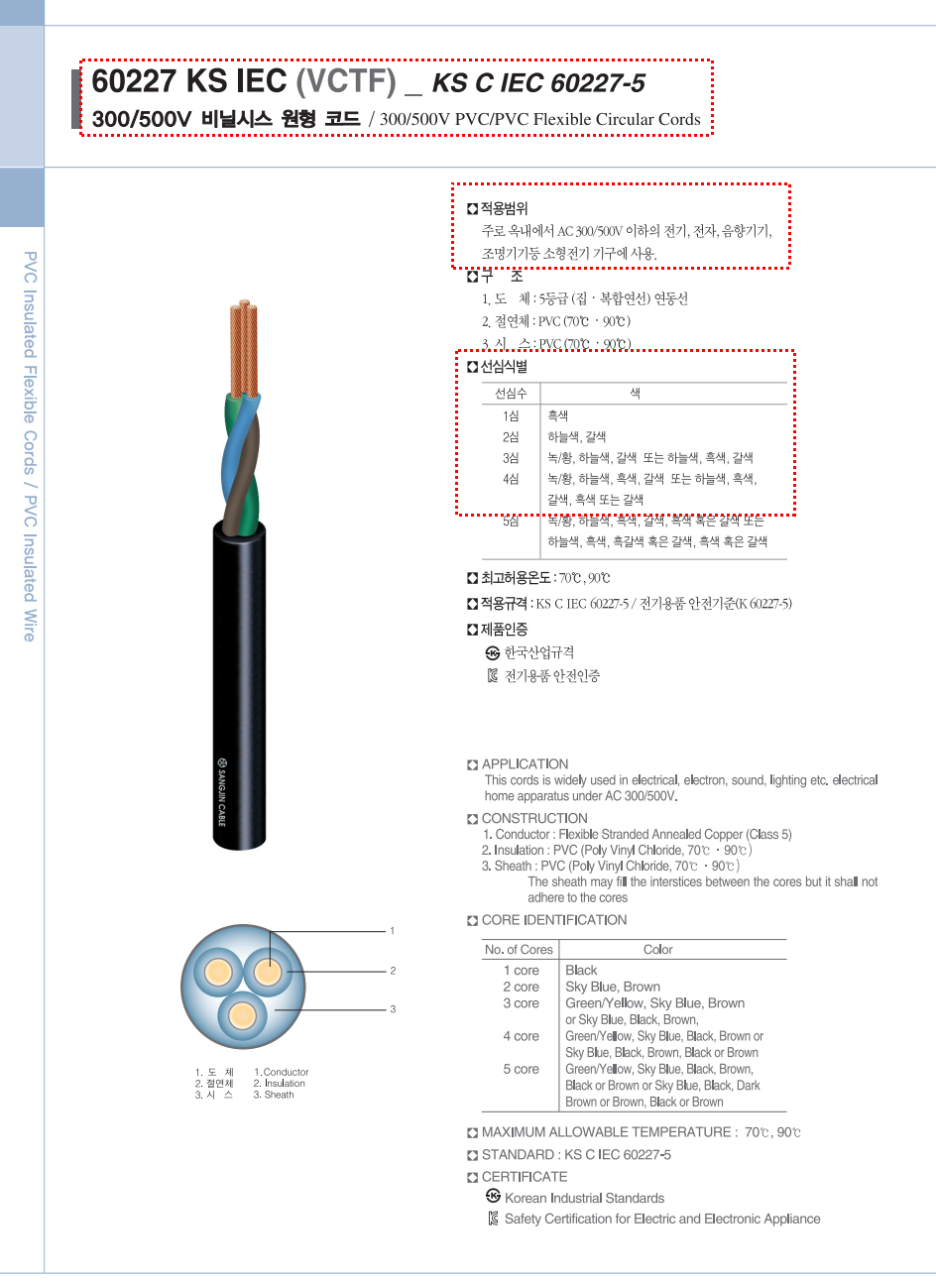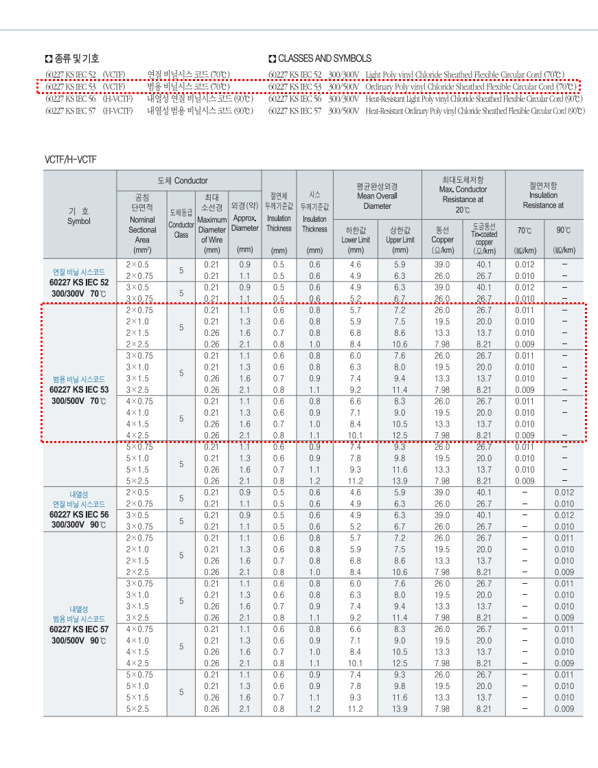 위 사진은 VCTF 전선 카다로그 사진입니다