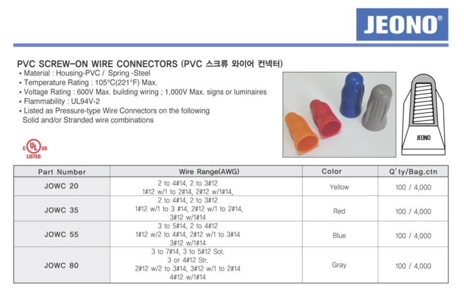 우선 1000EA 씩들은 와이어 콘넥타는 메이커는 GL,전오등이 있습니다.