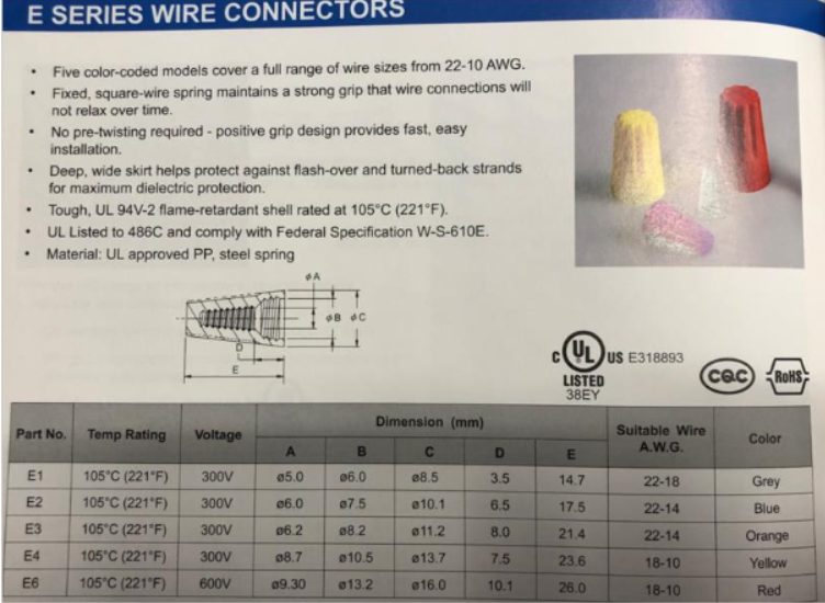 E3 AWG 22-14번 까지 SQ로 변환하면 약 0.5SQ ~ 2.5SQ 정도