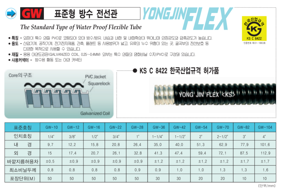 1. 표준형 방수 전선관 GW전선관 (후레시블)