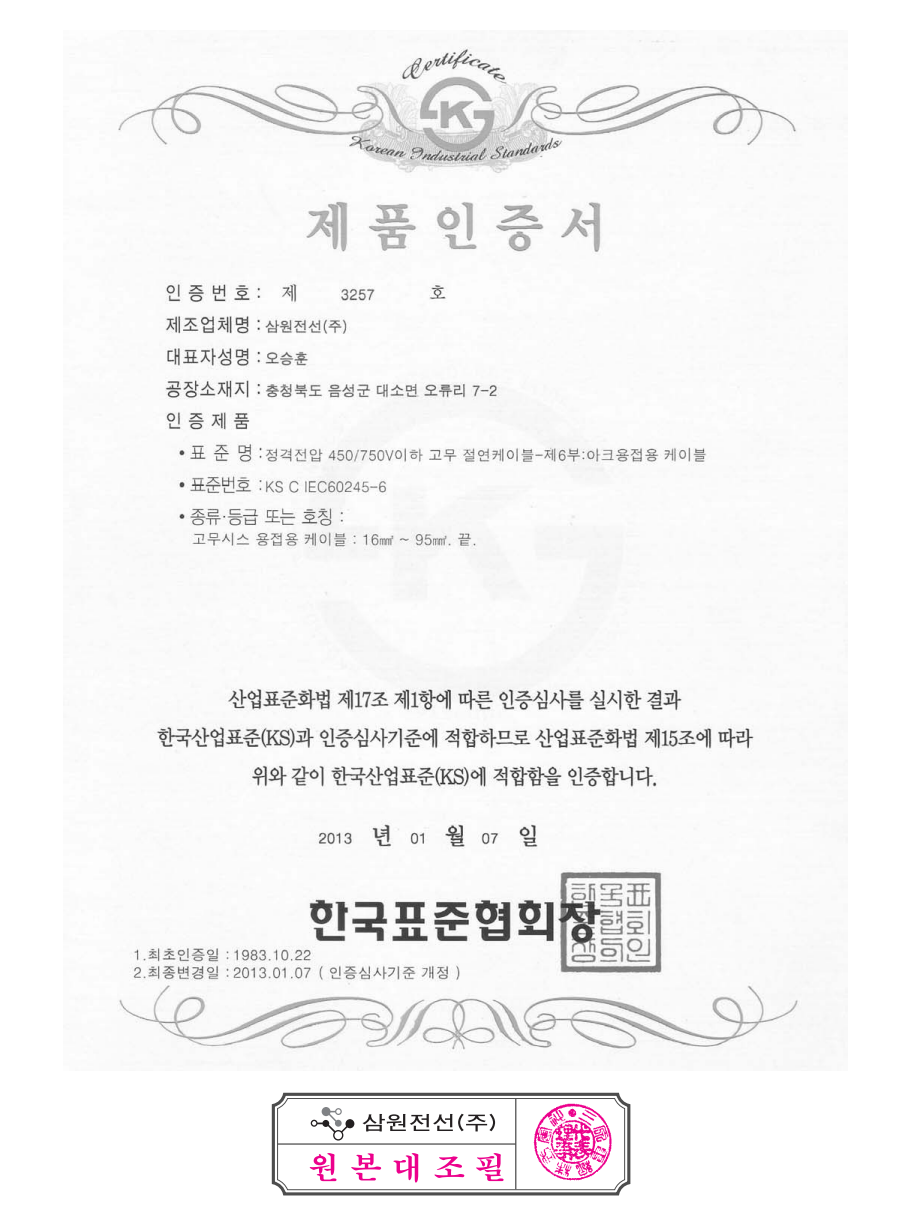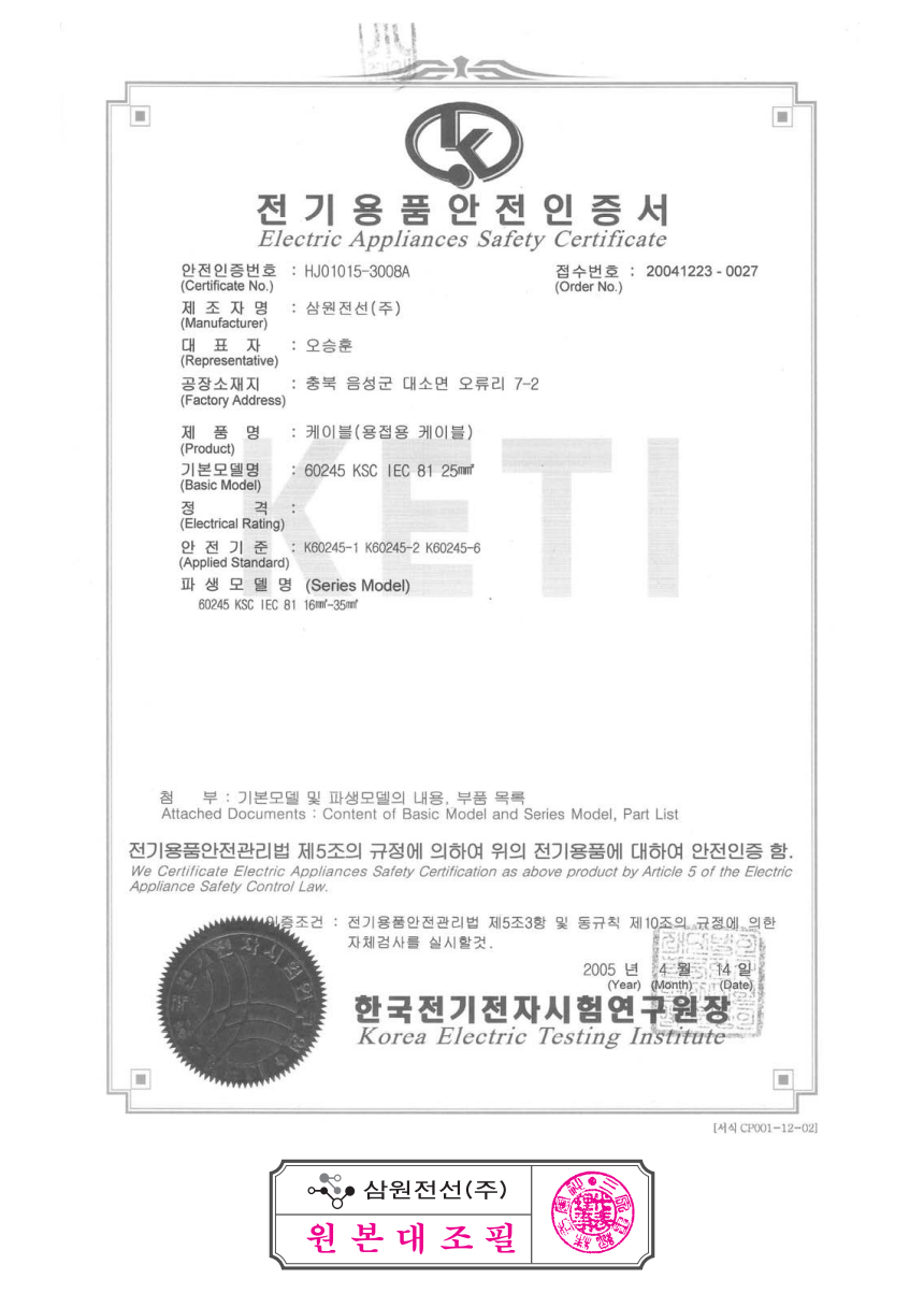 인증서는 전기용품안정인증서와 제품인증서 두가지가 있습니다