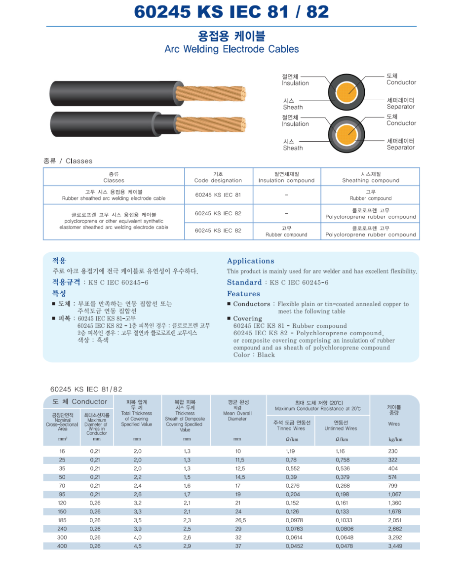 우선 용도는 아크 용접기에 전극 케이블로 쓰이고 유연성이 우수합니다.
